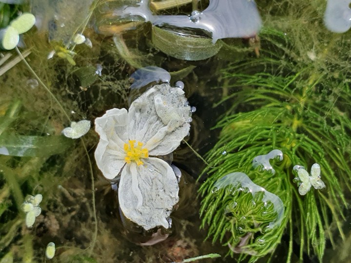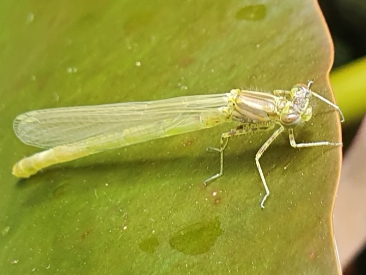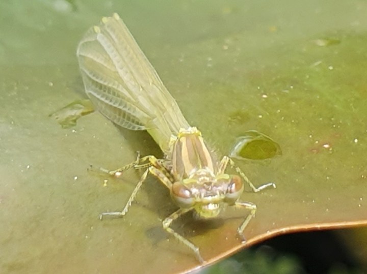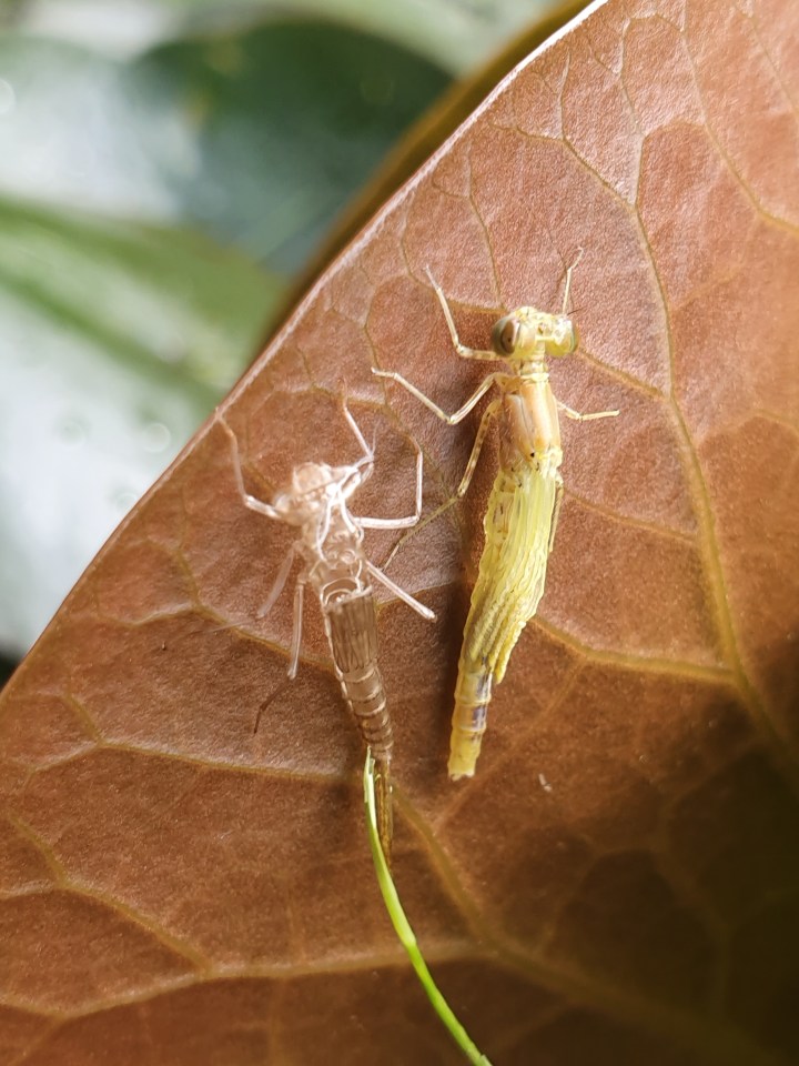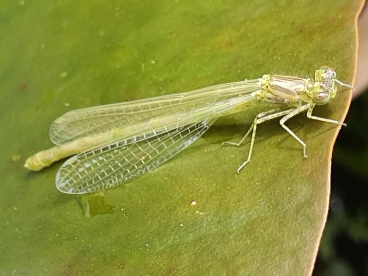 I love wandering around my pond in waders, just watching the tiny insects in the sunshine. Today I watched a damsel fly drying its wings after leaving its chrysalis.