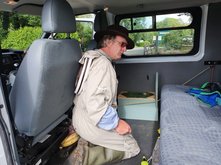 The swarm was shaken onto the bottom of the sheet. They then walk up into the new hive. The speed they walk up is amazing