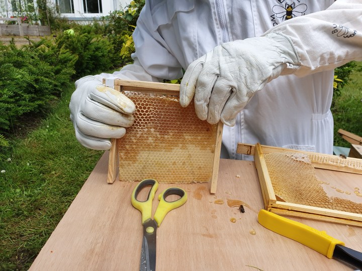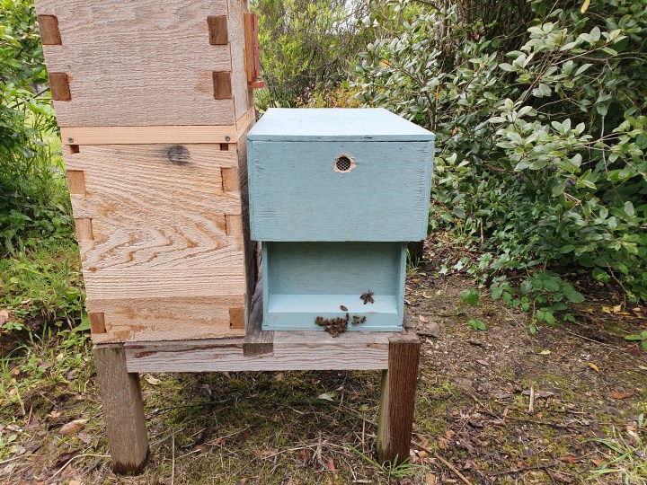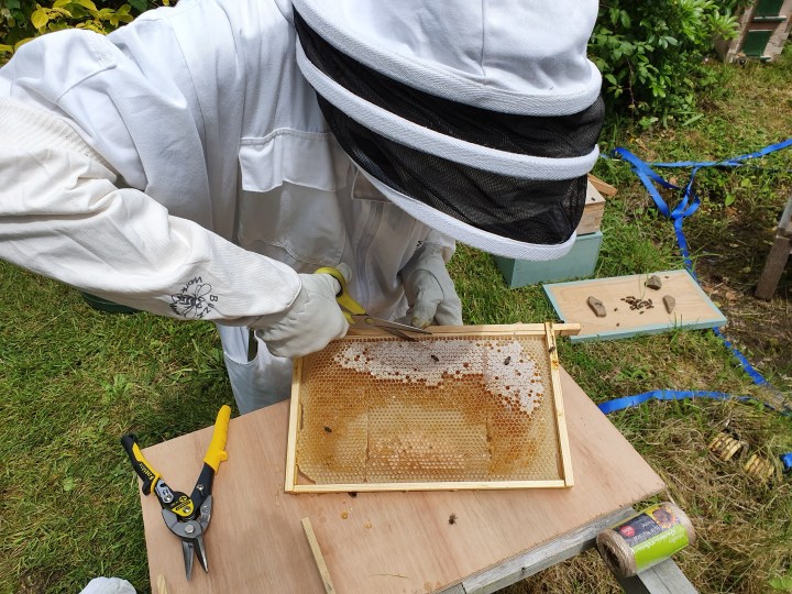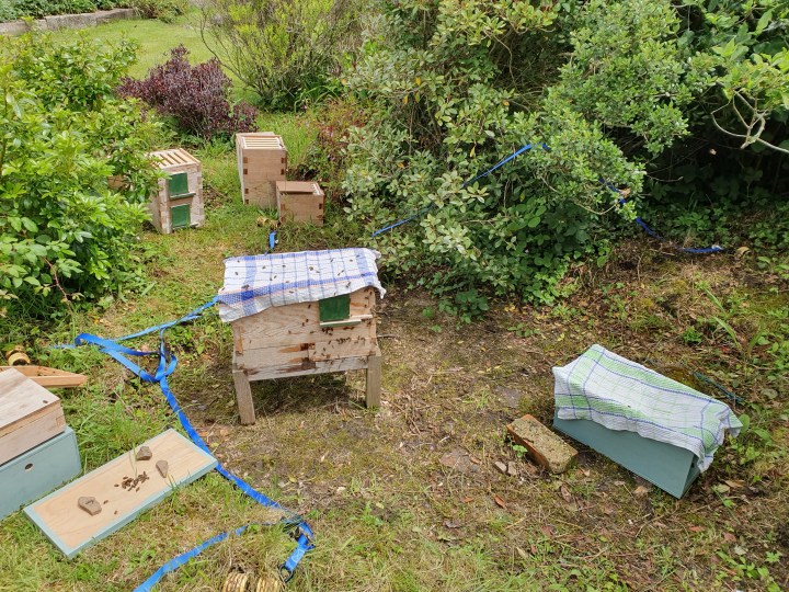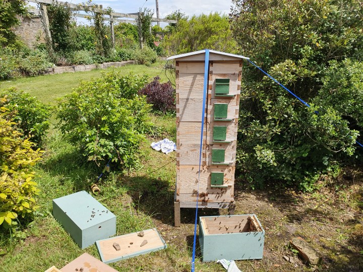 We recently started keeping bees in our garden and during this hot weather one of them swarmed. It was amazing to watch, and to see them walk up into their new home in such an orderly manner.